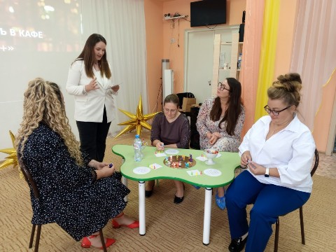 Как формировать интерес к чтению в семье, рассказала коллегам инструктор по ФК МБДОУ «Больше – Оёшинский детский сад «Теремок» Ахметова А.А. Анна Андреевна пригласила педагогов в кафе «Гармония». В кафе педагогам предстояло попробовать: салат «Чтение» - теоретические аспекты по формированию читательской грамотности; первое блюдо «Борщ» - педагоги сами добавляли нужные ингредиенты, отвечая при этом на вопросы по данной тематике; второе блюдо «На выбор» - педагогам предстояло решить педагогические ситуации; компот «Тестовый» - помог собравшимся определить всё ли верно в их деятельности по формированию читательской грамотности; десерт «Послевкусие» - каждый из участников поделился своими эмоциями о посещении кафе.