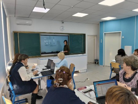 Каждая команда подготовила мини-мастер-класс, представив разработанные методики и формы взаимодействия с учениками по темам: задачи на смеси и сплавы, на движение, на движение по круговой трассе, совместная работа (например, покраска забора), нахождение площадей поверхностей геометрических фигур, сравнение объёмов вращающихся тел.