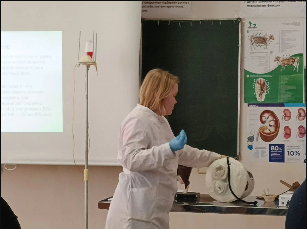 Также участники мероприятия посетили урок по ветеринарии, где студенты отрабатывали практические навыки в области гинекологии и акушерства. Впечатляющим моментом стало представление макетов внутренних органов, изготовленных студентами своими руками из папье-маше и глины, что наглядно демонстрирует их творческий подход и глубокое понимание материала.