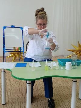 Занимательные химические опыты для старших дошкольников представила Чернякова Н.С., воспитатель МБДОУ «Новотырышкинский детский сад «Колосок». С помощью незатейливых опытов удалось получить малиновый компот и зефирное облако, которые потом исчезли.