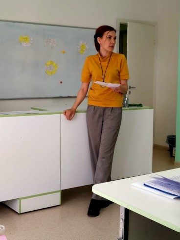 Очень оригинально представила свой вопрос учитель биологии МБОУ КСОШ №2 Коротченко Ю.Н. Ею был описаны некоторые способы привлечения и удержания внимания учеников на уроках биологии. Педагогом была описана технология личностно-ориентированного подхода на уроках. Юлия Николаевна уточнила, что современному ребёнку необходимо развивать самостоятельное целеполагание, а также предлагать ученикам ситуации выбора. После обсуждения темы педагог провела мастер-класс по вышеуказанной технологии. Педагог предложила участникам ММО слепить из пластилина аппликацию на картоне на тему: «Клетка». Участники ММО с огромным удовольствием приняли задачу и выполнили ёё. После выполнения каждая группа представила результаты своей работы.