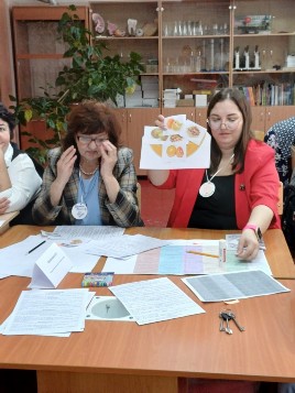 Далее, учителя в ходе круглого стола обсудили профориентационную и практическую направленность уроков биологии и химии и способы реализации такой направленности на уроках. В ходе обсуждения учителя предлагали отрабатывали способы решения «западающих» заданий ГИА. В рамках обсуждения руководитель ММО, Воронцова А.Н., провела небольшой мастер-класс и предложила свой способ решения проблемы неуспешности по отработке заданий ГИА, связанный с ассоциативным мышлением.
